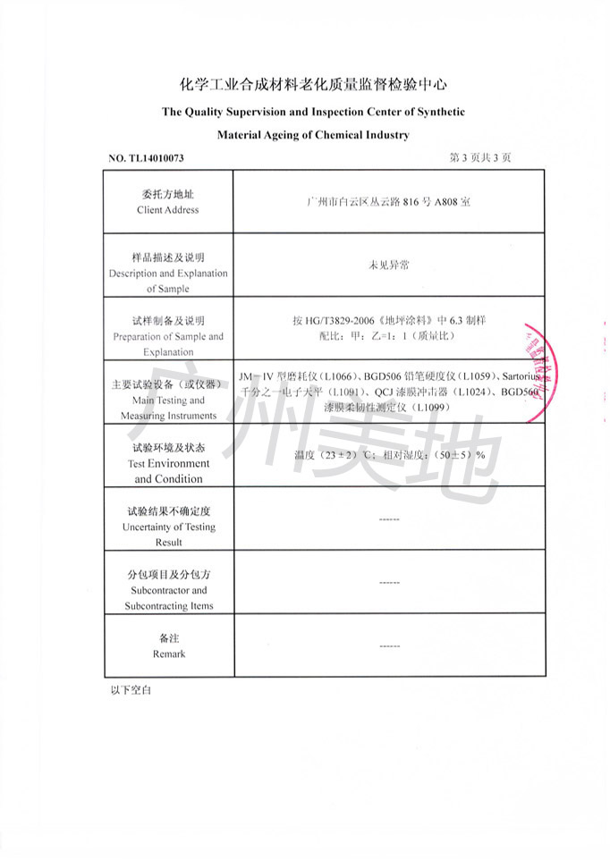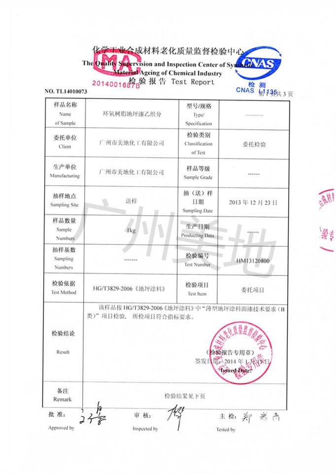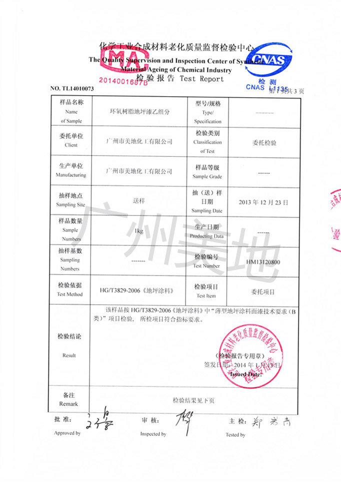 環氧自流平地坪漆檢驗證書